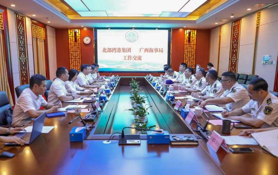 刘胜友感谢广西海事局长期以来在国家战略实施、重大项目建设、水上交通监管、口岸对外开放等方面对北部湾港集团给予的大力支持。他指出,北部湾港集团正深入贯彻落实习近平总书记关于广西工作论述的重要要求和对北部湾港提出的“四个一流”重要指示,在自治区党委、政府的坚强领导下,牢固树立“实干为要、创新为魂,用业绩说话、让人民评价”的鲜明导向,坚决落实战略任务,加快推动港口物流发展和产业优化升级,持续深化区域合作和对外开放发展、提升枢纽能级,全力以赴完成千万标箱战略目标和全年经营指标。他希望广西海事局在口岸对外开放验收、港口运营及船舶监督管理提质增效、协调组织平陆运河江海直达示范船舶配员、优化港口作业区布局助力码头能级提升、推动西部陆海新通道(广西)智慧水运网建设等方面给予更多指导和更大支持,双方持续深化合作,合力为高水平共建西部陆海新通道、北部湾国际门户港作出新的贡献。