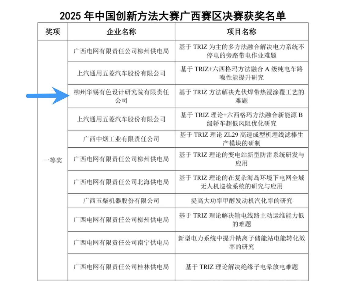 华锡有色《基于TRIZ方法解决光伏焊带热浸涂覆工艺的难题》:破解光伏焊带关键障碍,斩获赛区一等奖