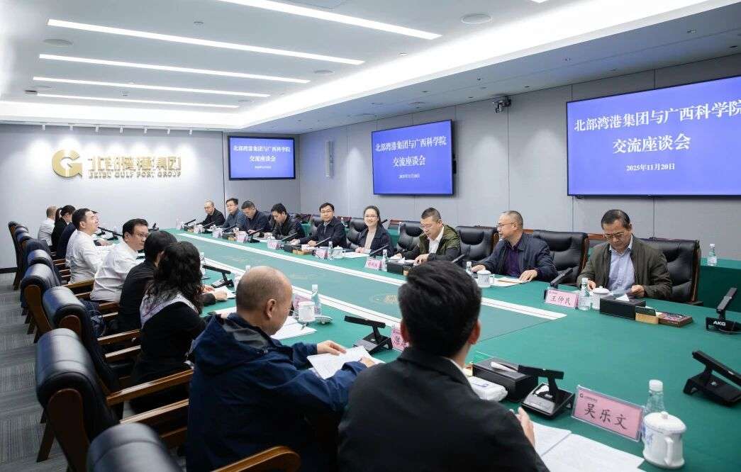 汪旭对广西科学院给予北部湾港集团的支持表示感谢,希望双方继续加强院企合作,通过“联合引才、双聘管理、共同支持” 的合作模式,加强人才交流管理,组建高水平创新团队,推动更多产学研项目落地。