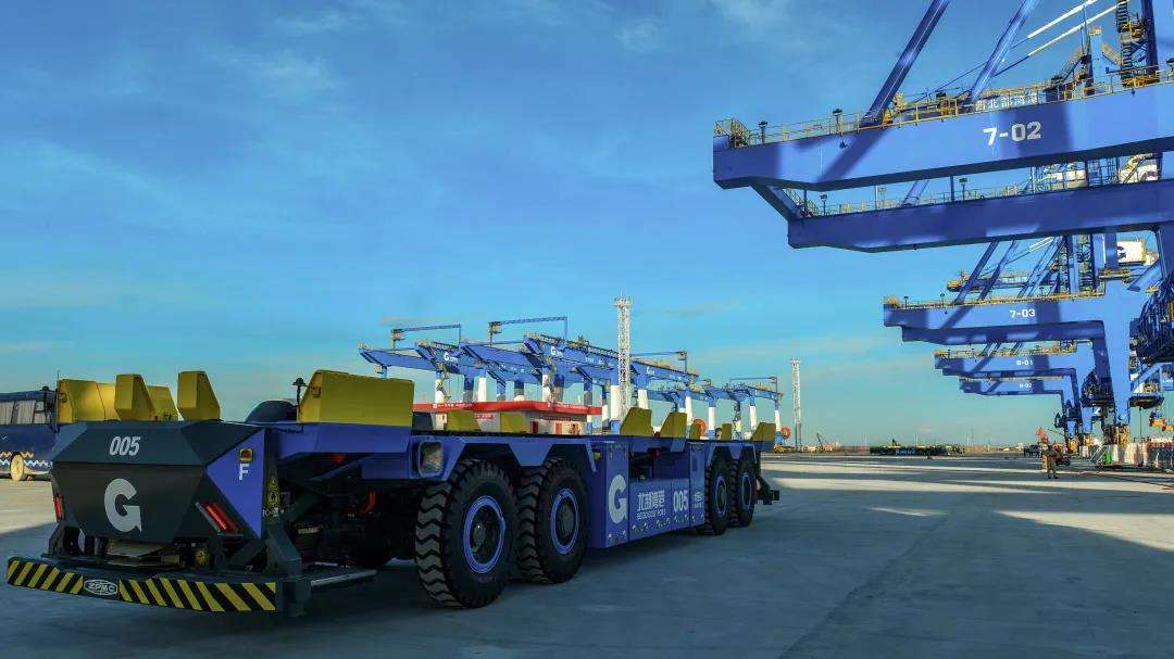 水平运输的IGV采用八轮四轴结构,最大轮压与普通外集卡相当,无需增加土建投资;采用了373kwh的大容量磷酸铁锂电池,满电续航可达到最大8小时;同时联合专业公司,首创新型智能充电机器人,在定点充电工艺的基础上实现大电流智能快充,从0充满仅需一小时。