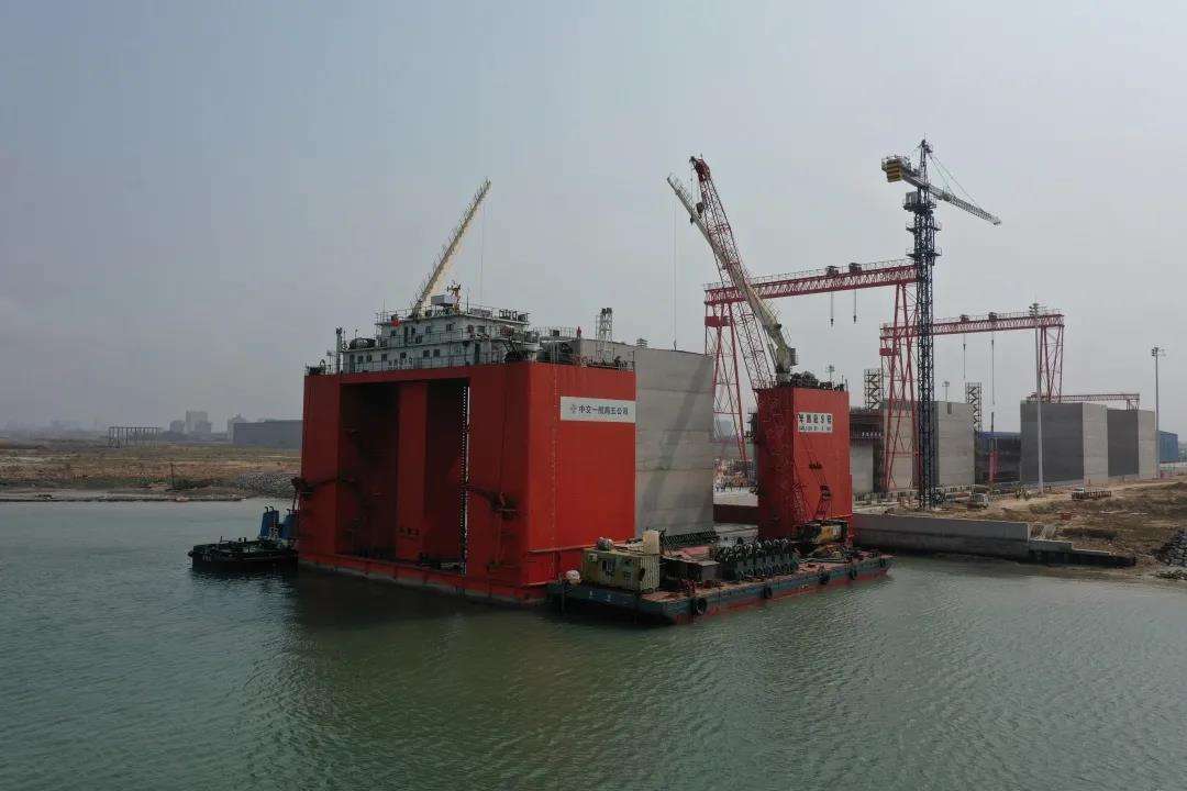 9月21日凌晨1点,伴随着中国交建半潜驳9号缓缓下沉,钦州港大榄坪港区大榄坪南作业区9号、10号泊位工程码头主体最后一个沉箱顺利出驳,项目取得阶段性成果,至此,33座沉箱全部完成安装,为钦州港20万吨级自动化集装箱码头建设打下坚实基础。
