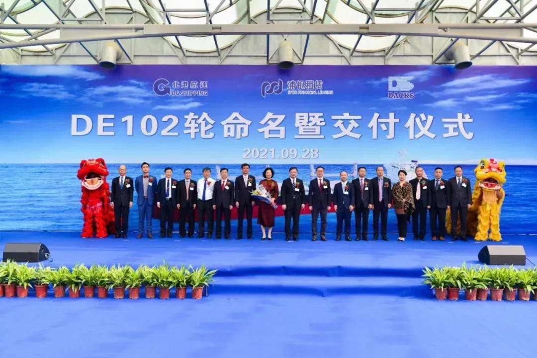 2021年9月28日,“北部湾百色 BBG BAISE”轮命名暨交接仪式在大连举行。