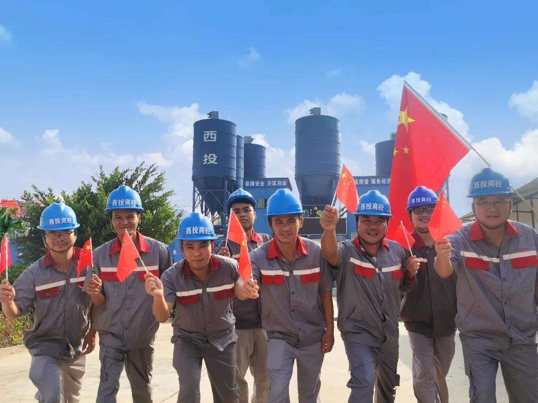金秋十月,和风丽日,西江集团旗下广西西投商品混凝土有限公司生产工人在生产现场和国旗同框,用自己的行动,坚守岗位,奋战一线,全体员工将以饱满的热情和认真负责的态度,与祖国共奋进,与企业共成长!