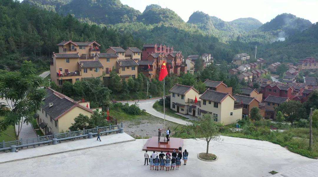 国庆当天,华锡集团派驻南丹县朵努社区乡村振兴驻村工作队员林小嵘、覃家良和当地群众一起在桂西北大山深处“升国旗,庆国庆”! “国是千万家,爱家更爱国,尤其摘掉贫困的帽子后,村民们形成了凝聚力,在乡村振兴的路上,我感觉到没有啃不下的骨头”林小嵘坚定的说。