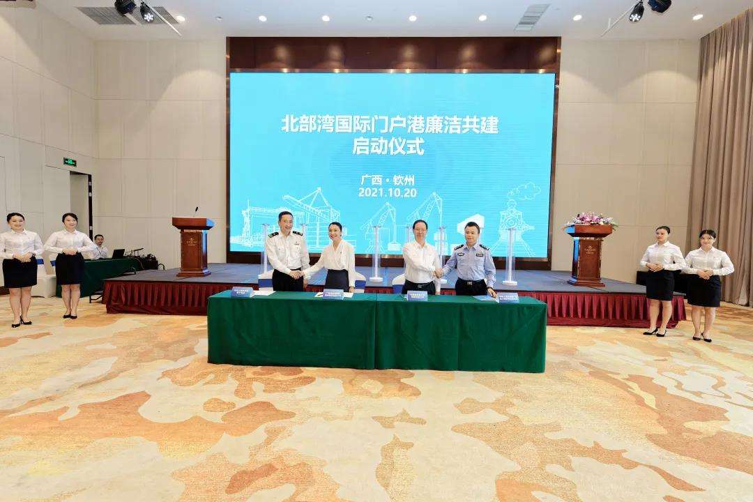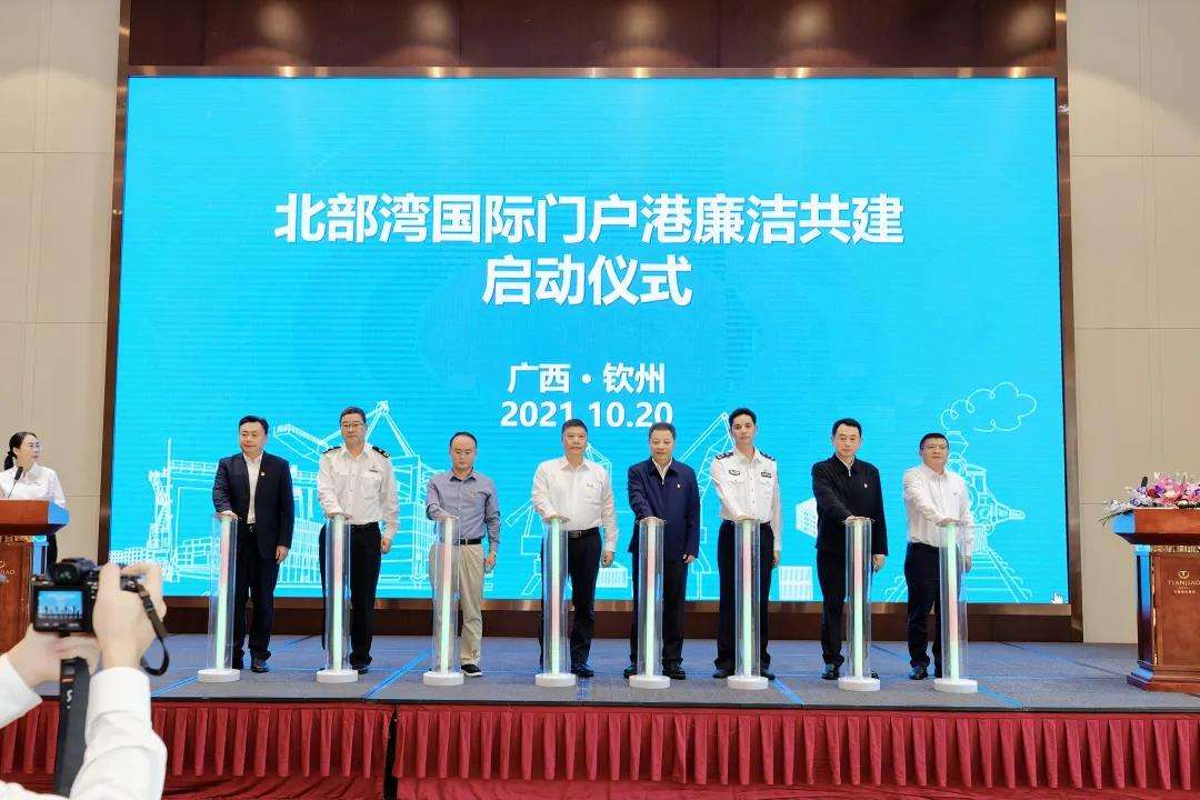 10月20日,北部湾港集团、中国铁路南宁局集团、南宁海关、广西出入境边防检查总站共同发起倡议,在钦州举行了北部湾国际门户港廉洁共建启动仪式,携手共建“廉洁门户港”。