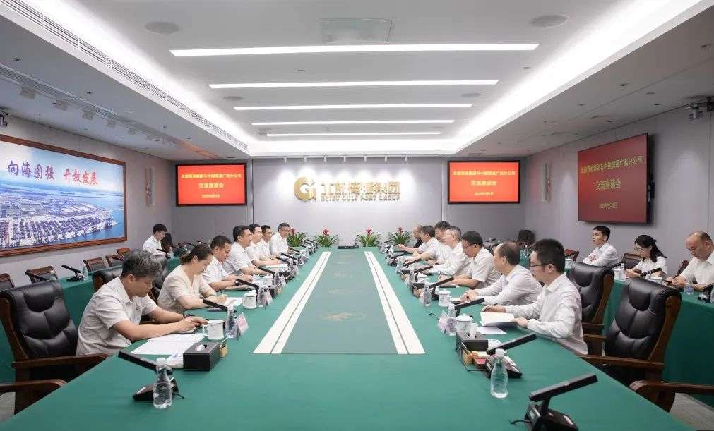 5月9日,北部湾港集团党委书记、董事长刘胜友在北部湾航运中心会见到访的广西联通党委书记、总经理杨暐一行,双方围绕人工智能合作与应用、东盟业务合作等事宜展开深入交流座谈。集团公司党委副书记、副董事长、总经理马正国参加座谈。