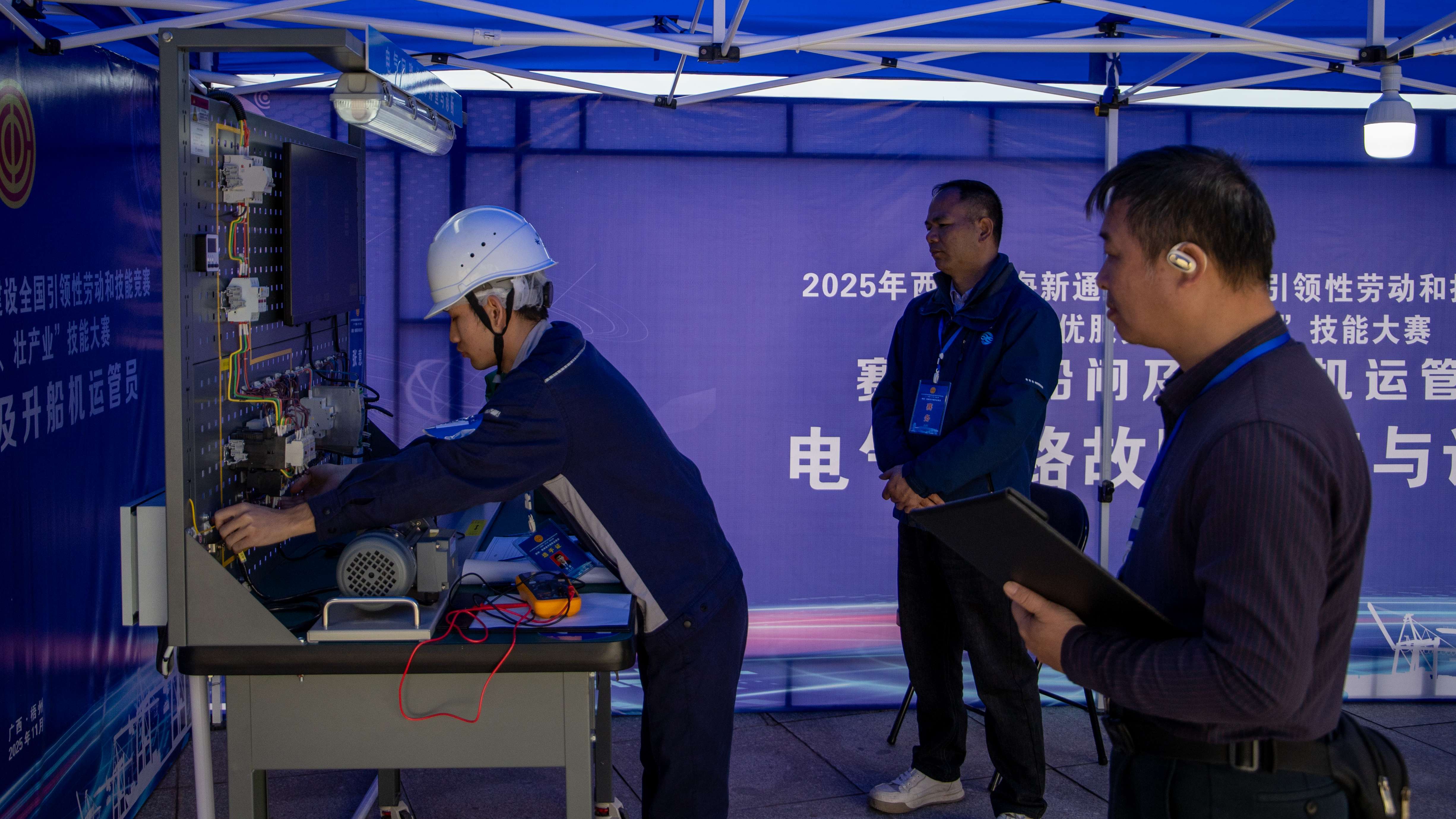 技能操作聚焦船闸安全运行“生命线”,考查西江船闸船舶调度实操、电气回路故障排查与诊断、液压启闭机调试及故障诊断、电机变频驱动控制系统安装与调试等技能,全面检验选手应急处置与精密操作能力。