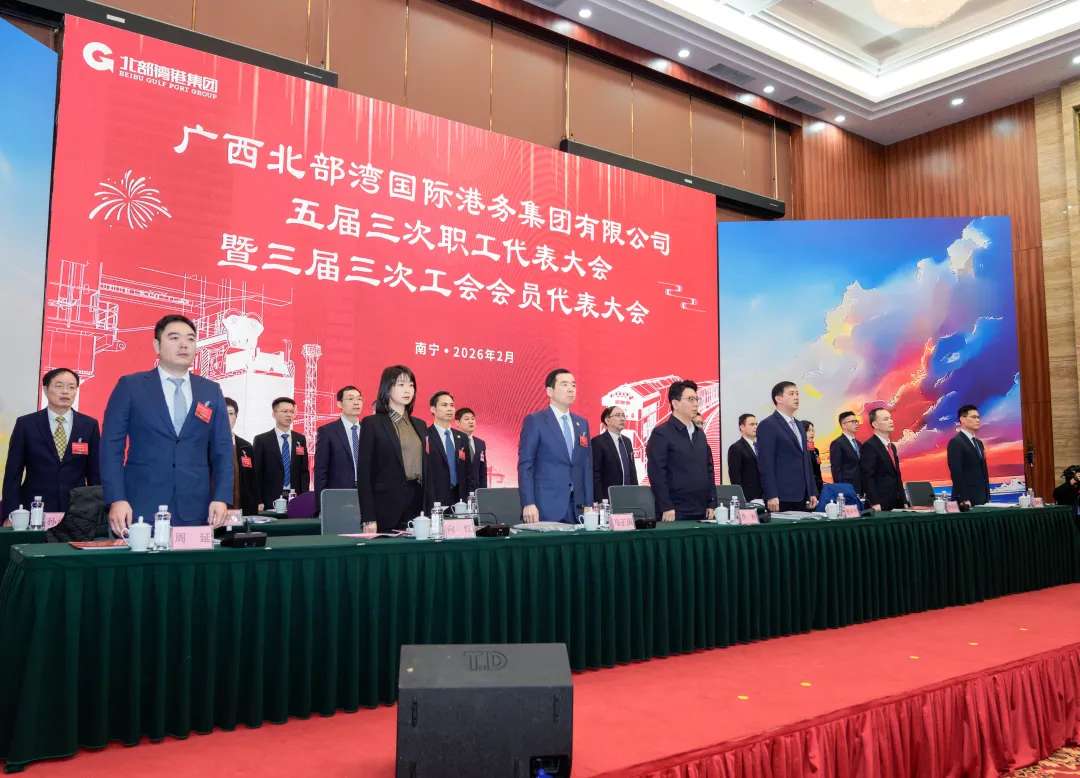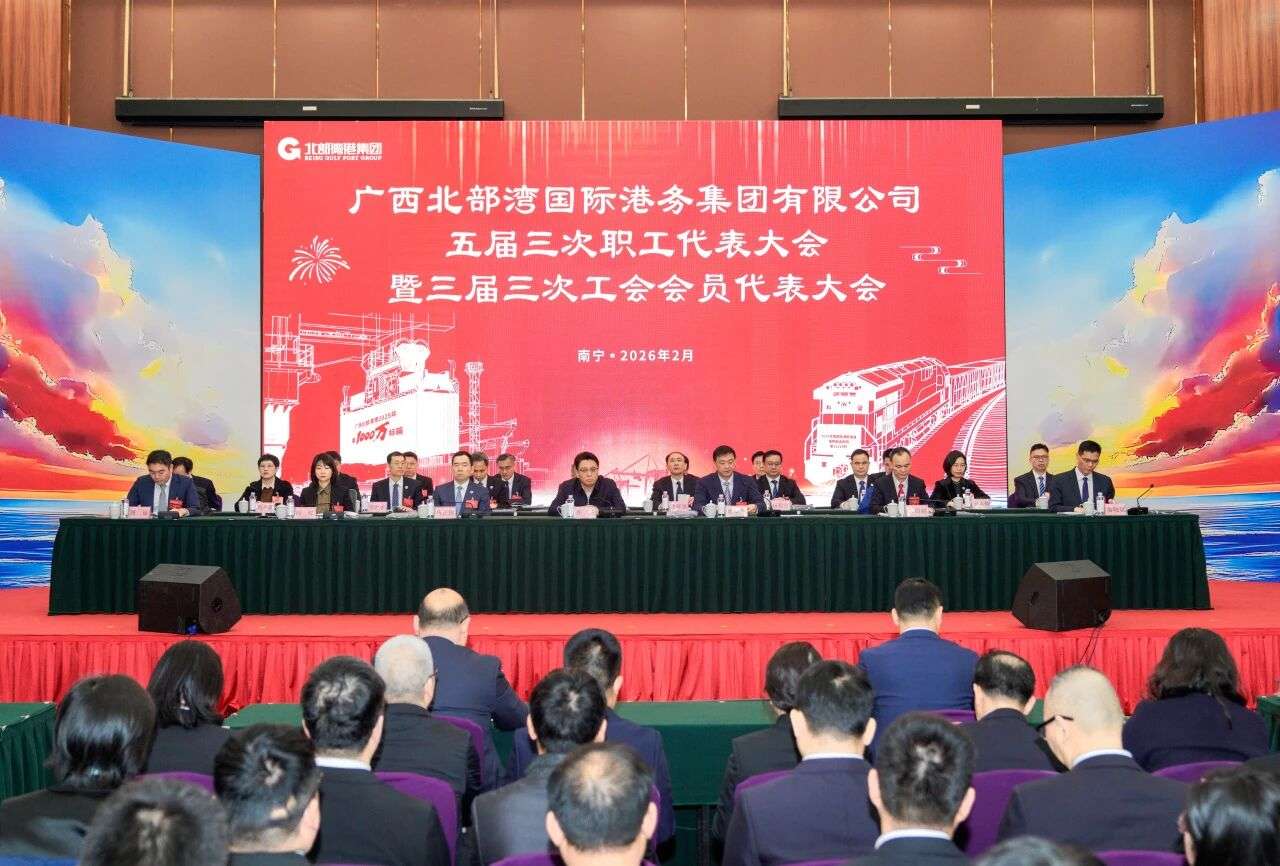 2026年2月9日,北部湾港集团五届三次职工代表大会在南宁召开。集团公司总部机关及各单位的269名职工代表出席大会,共同审议工作报告,共商改革发展大计,为加快建设世界一流港口企业集团、打造北部湾国际门户港和国际枢纽海港凝聚智慧力量。自治区国资委党委委员乔杨出席会议并作指导发言。集团公司党委书记、董事长胡华平作总结发言,集团公司党委副书记、副董事长、总经理马正国作工作报告,集团公司领导班子成员彭绍萌、邓远志、向红、潘晓斌、周延出席会议。