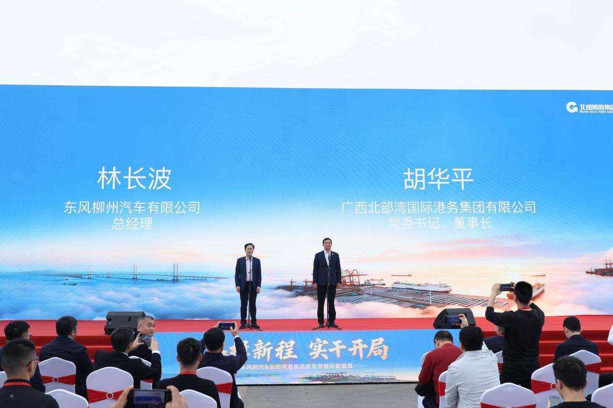 2月28日,北部湾港集团联合东风柳汽在钦州开展以“奋楫新程 实干开局——东风柳汽&北部湾港集团服务双循环新篇章”为主题的活动,活动中双方签署协议共谋联合出海。集团公司党委书记、董事长胡华平、总经理马正国,东风柳汽总经理林长波、党委书记刘小平出席活动。这标志着双方合作迈上新台阶,这也是推动“广西货走广西港”的具体实践,对加快打造国内国际双循环市场经营便利地具有重要意义。