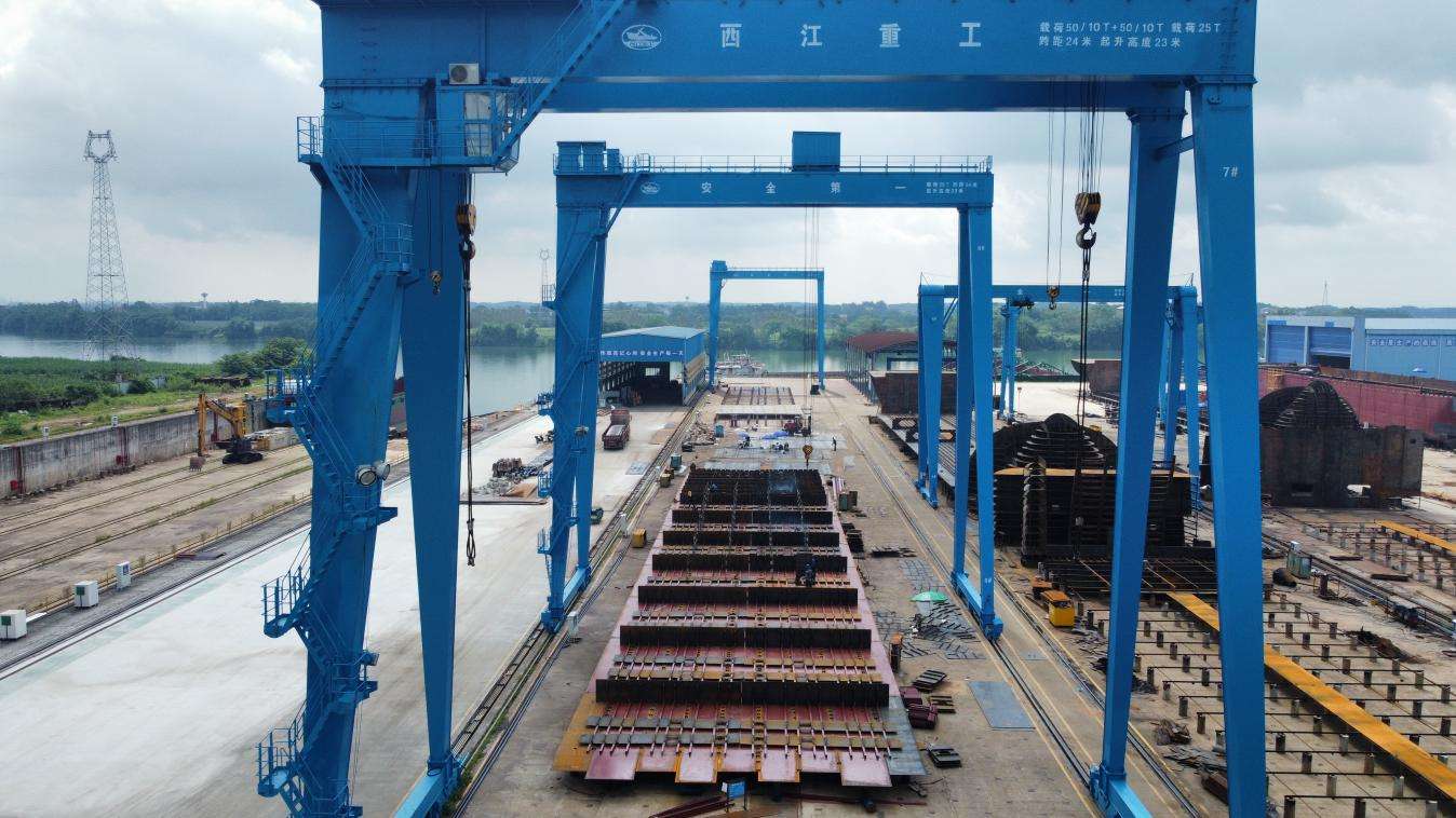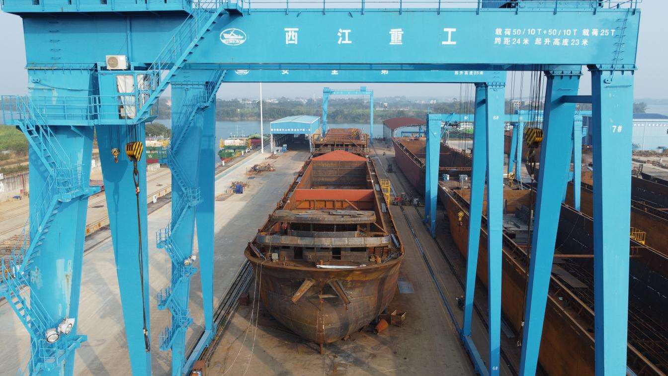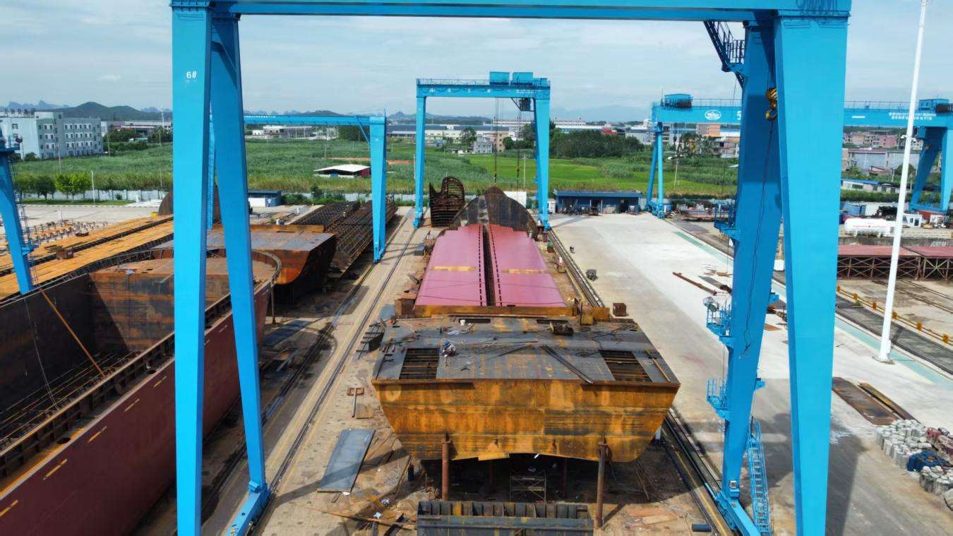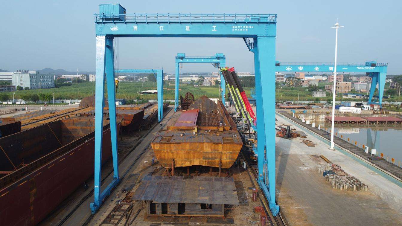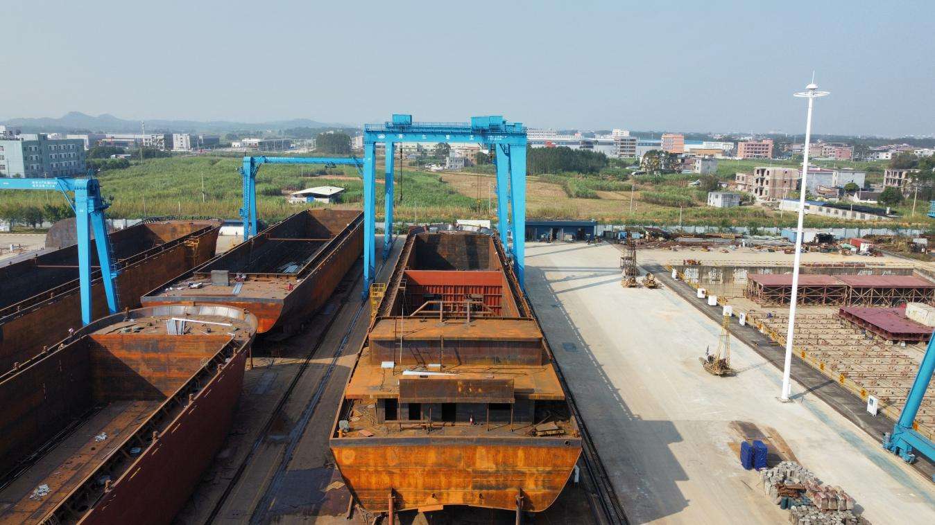 近日,在贵港西江重工造船基地一派繁忙建造景象,由北部湾港集团旗下广西北港西江港口有限公司牵头、广西西江重工有限公司承建的平陆运河示范船项目全速推进。当前河船已进入气罐吊装关键工序,海船建造有序开展,项目锚定2026年8月中旬前顺利下水运营目标,以硬核装备保障筑牢平陆运河高质量通航根基。