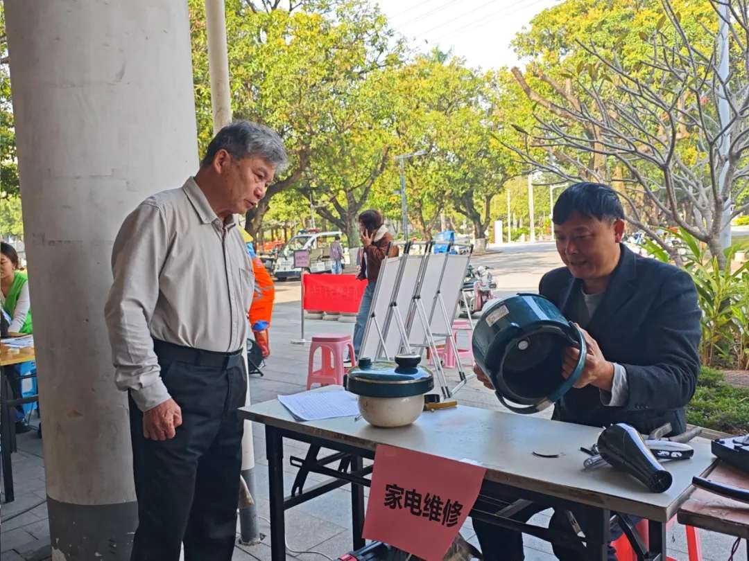 防城港码头在防城港市活动现场摆起摊位,为市民提供家电维修、爱心义剪等便民服务。志愿者们热情高涨,严谨细致地检查故障、修剪发梢,为市民排忧解难,赢得了过往旅客的广泛认可与点赞。