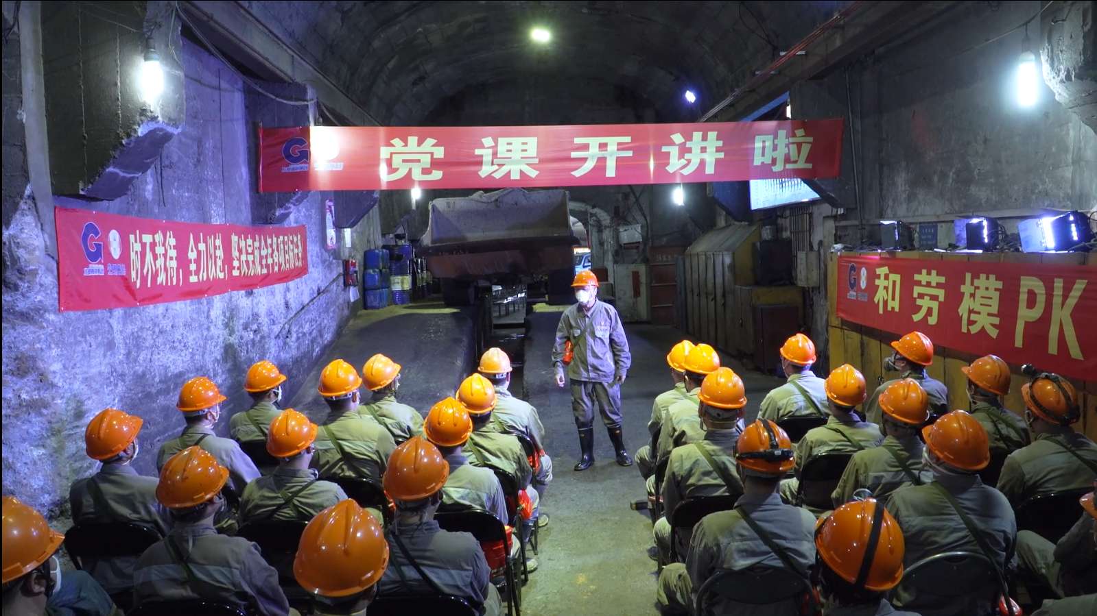 这节别开生面的党课开讲的地点,是在北港旗下华锡集团铜坑矿井下405米的维修洞室。党课里的说的“劳模”叫黄文宣,他可是个响当当的人物。作为一名优秀的井下铲运机司机,他先后获得全国劳动模范,全国“五一”劳动奖章和自治区、集团公司劳模等荣誉,是党的十八大、十九大代表。不过,在这堂党课的主角不是黄文宣,而是这位要和劳模PK的人,他叫张安吉。