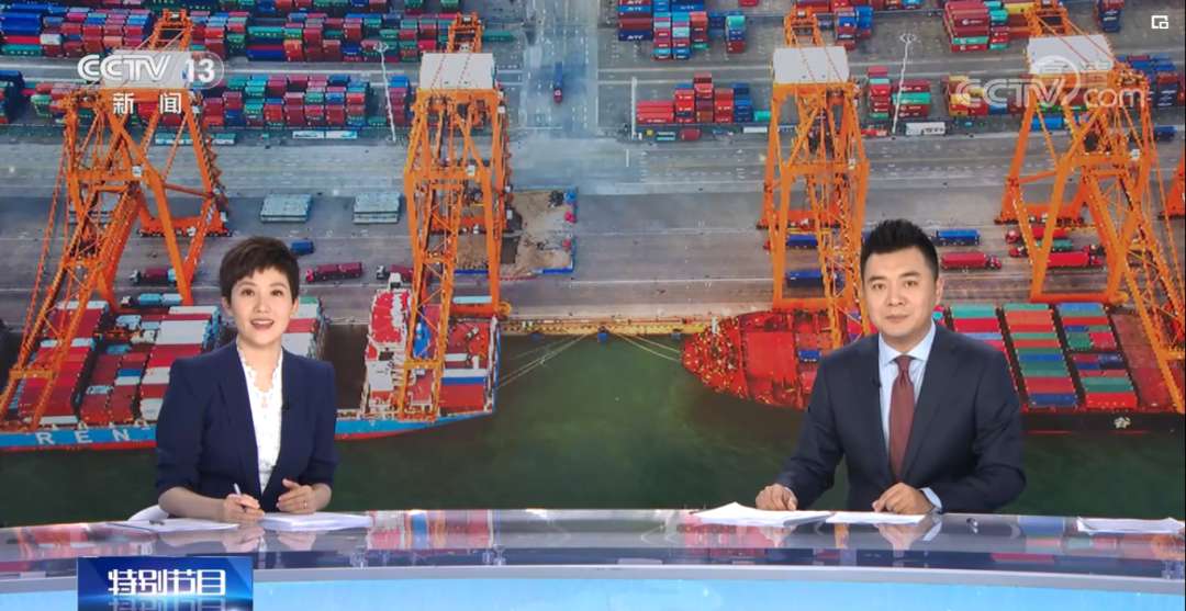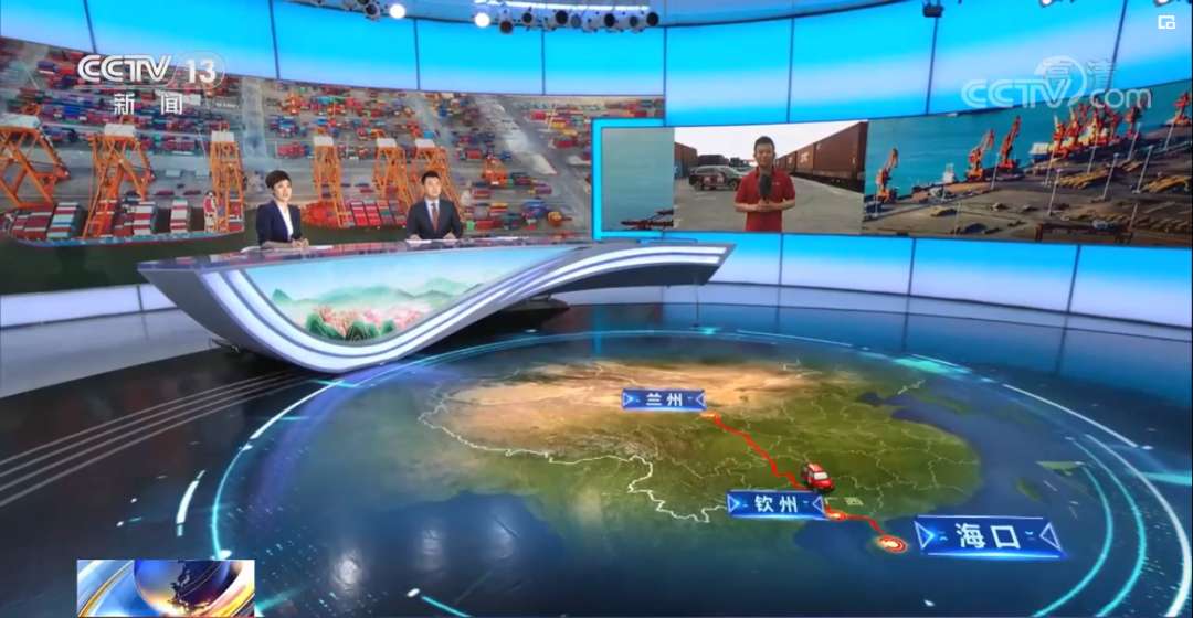 在当天中央广播电视总台新闻频道播出的《沿着高速看中国》系列报道中,还通过直播的形式,连线了钦州铁路集装箱中心站,为大家介绍了西部陆海新通道开通以来,海铁联运集装箱班列的运行情况。