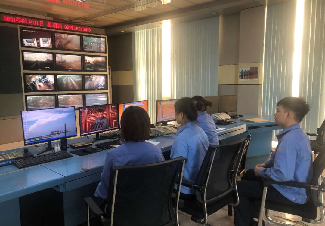 北部湾港集团组织全集团3万多名职工通过多种形式,在港口、码头、矿山井下、厂区车间、生产班组一线收听收看庆祝中国共产党成立100周年大会盛况,共同见证这伟大的时刻,共同聆听这伟大的声音。