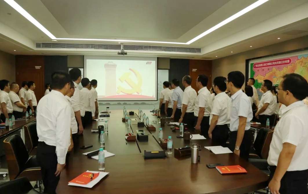 西江港口党员起立向伟大的党致敬。