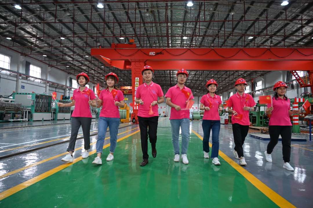 北港商贸一线员工为中国共产党百年华诞摇旗呐喊。