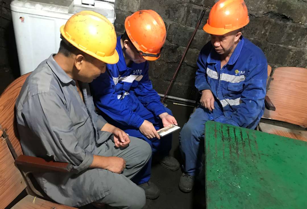 西江集团一线职工利用执勤轮班休息间隙,在工地观看大会实况。
