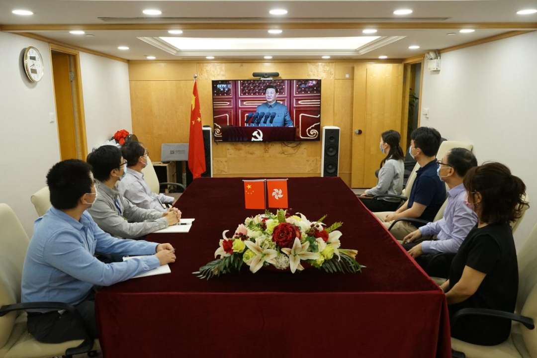 香港桂江员工观看直播。
