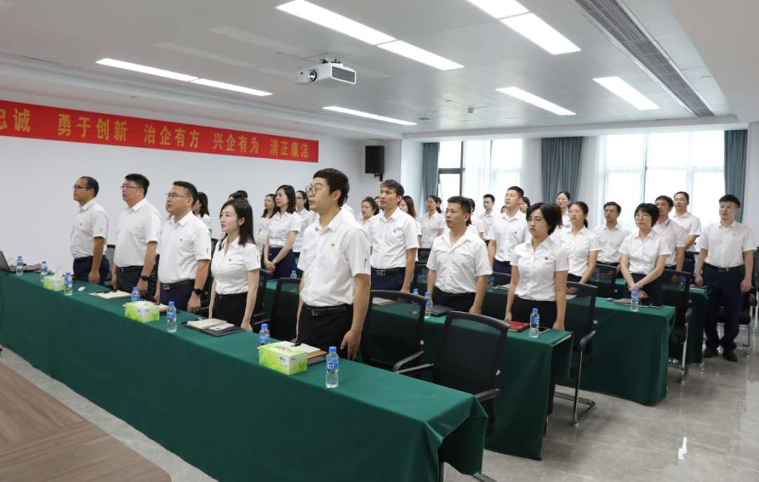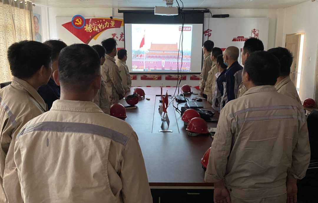 北港资源总部党员代表全体起立高唱国歌。