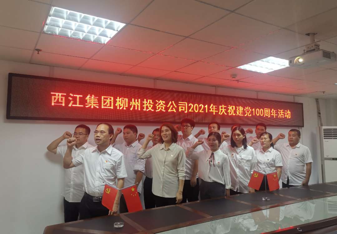 西江集团柳州投资公司在观看大会直播结束后,就地重温入党誓词,回忆入党初心。