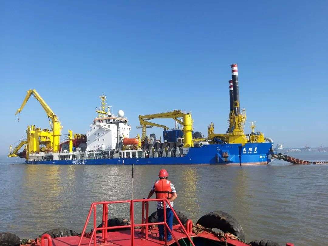 亚洲最大、最先进的绞吸挖泥船“天鲲号”正在东航道施工